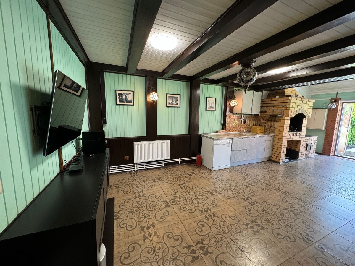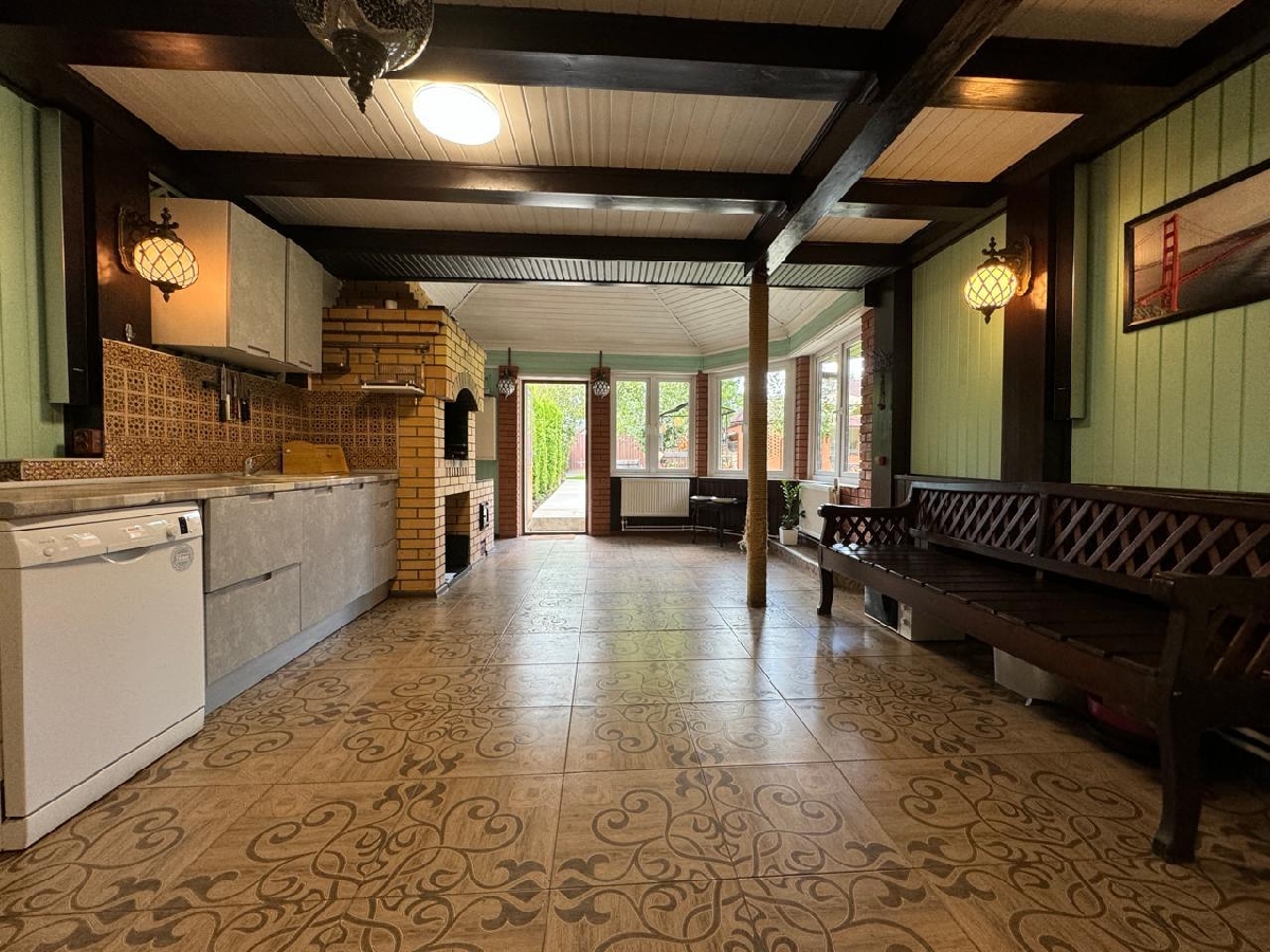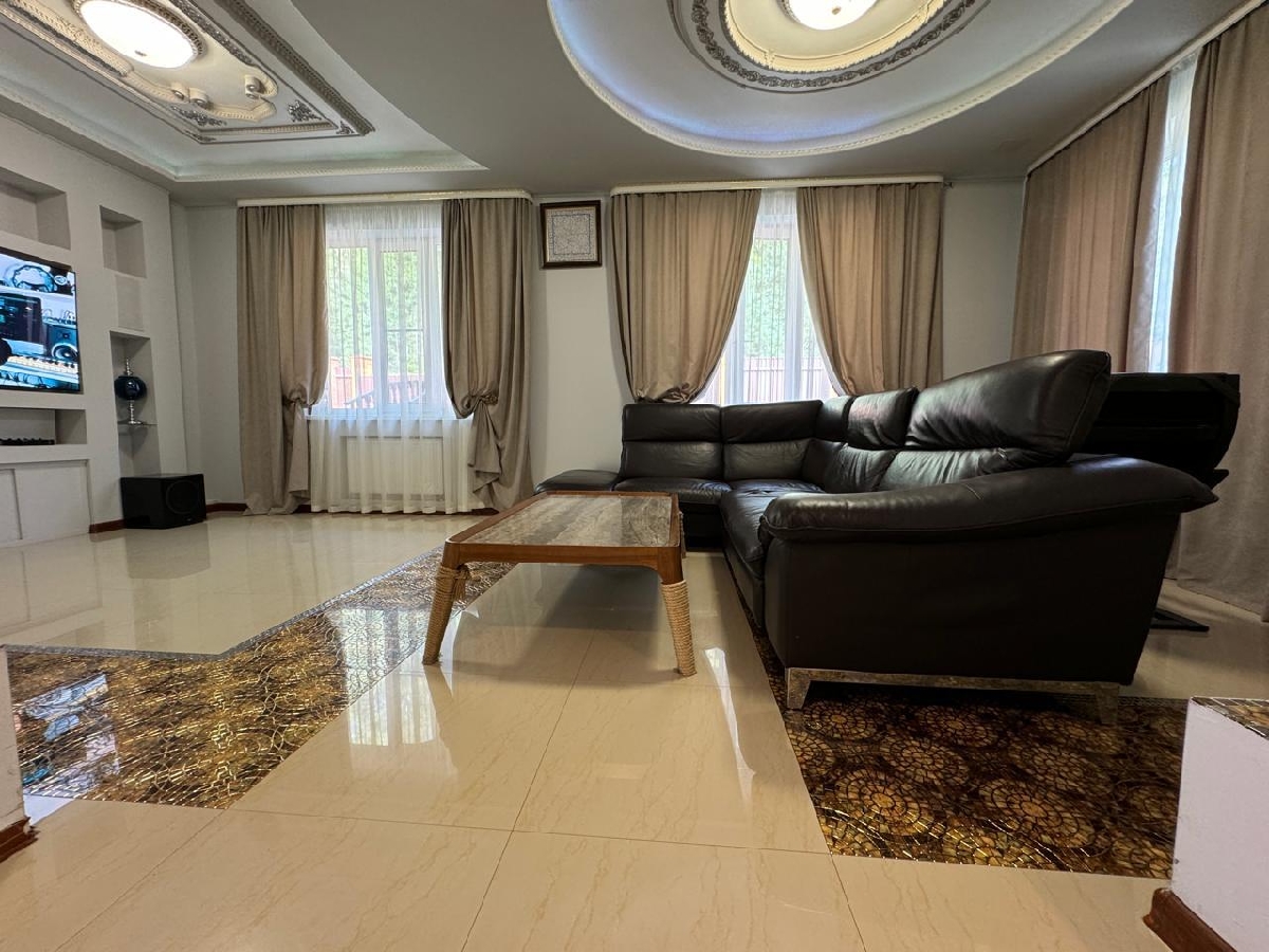 Загородный Дом — усадьба, расположенный в Истринском районе, в 35 км от МКАД по Новорижскому шоссе. Участок находится в уникальном месте — первая линия от огромного лесного хвойного массива (30 га), в пешей доступности большое цветочное поле с протекающей речкой — Истра, в 15 минутах езды от дома — Истринское водохранилище. Дом кирпичный, два этажа, на бетонной шведской плите 70 см, крыша- металлочерепица, перекрытия бетон, 3 спальни, два балкона-ковка. В доме новый дизайнерский ремонт, теплый пол: первый этаж — керамогранит, второй этаж- деревянный паркет. А также на участке имеется: 1. Дом гостевой — деревянный сруб в два, с баней, душевой, санузлом 4. Домик для прислуги с панорамным окном, душевой, санузлом. 2. Гараж, теплый, с подогревом пола; 3.Беседка — барбекю, зимний вариант с теплым по лом, печь барбекю. На территории — газ, септик, скважина 90 метров, уличный бетонный бассейн с системой фильтрации и очистки, спортивная площадка с инвентарем, видеоконтроль, проводной интернет, плодовые и декоративные деревья, ландшафтный дизайн, фонари, дорожки выложены английской брусчаткой, газон.